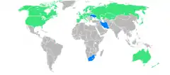 Страны, участвовавшие в играх. Зелёным показаны страны, уже участвовавшие, синим — принимающие участие первый раз. Жёлтая точка — город Нагано