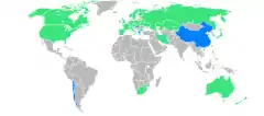 Страны, участвовавшие в играх. Зелёным показаны страны, уже участвовавшие, синим — принимающие участие первый раз. Жёлтая точка — город Солт-Лейк-Сити