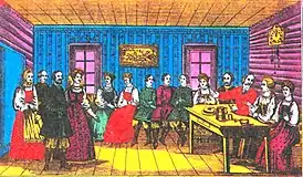 С утра, перед тем как сесть за стол, пили Крещенскую воду с «Иордани». В тех местах, где этот день считался праздничным, никакие работы не выполнялись[13]. В иных местах[где?] после обеда начинались посиделки с работой[14].