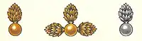 В армейских гренадерских полках знаком на кивер служило изображение медной «гренадки о трех огнях». Такие же «гренадки» были на киверах офицеров и нижних чинов минёрных рот 1-го и 2-го пионерных полков. Они были сделаны не из меди, а из белого металла.