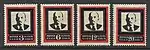 - Коричневая, красная. Печать типографская на бумаге без водяного знака и без зубцов. Марочные листы по 100 (10×10), группы по 4 блока (5×5) марок, разделённых дорожками. В почтовое обращение официально не поступали, известны с филателистическими гашениями[18][19][23].