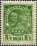 Почтово-благотворительный выпуск «Беспризорным детям»: Ленин в детстве[Комм 6][1][3][16] | 0,18+0,02 руб. |