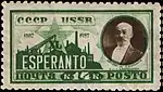 - 40-летие создания эсперанто: портрет Л. Л. Заменгофа, тёмно-коричневая, зелёная. Печать на мелованной бумаге без водяного знака, перфорирована: рамочная зубцовка 10½ (на каждые 2 сантиметра края марки приходится 10½ зубцов), 40 (5×8) экземпляров на марочных листах[1][18][19].