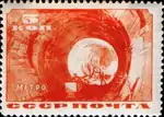 - Серия «Строительство первой очереди Московского метрополитена»: прокладка тоннеля метро, оранжевая. Фототипия на бумаге с водяным знаком «ковёр», перфорирована: линейная зубцовка 14 (на каждые 2 сантиметра края марки приходится 14 зубцов). В марочных листах 100 (10×10) марок[2][9][14].