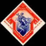 - Серия «40-летие со дня смерти Фридриха Энгельса»: портрет Ф. Энгельса, коричнево-чёрная. Фототипия на бумаге с водяным знаком «ковёр», перфорирована: линейная зубцовка 14 (на каждые 2 сантиметра края марки приходится 14 зубцов). В марочных листах 80 (10×8) марок[2][19][20].