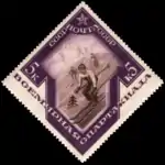 - Антивоенная серия «К 20-летию начала Первой мировой»: Меч — плуг войны, коричневая. Фототипия на бумаге с водяным знаком «ковёр», перфорирована: линейная зубцовка 14 (на каждые 2 сантиметра края марки приходится 14 зубцов). В марочных листах 75 (15×5) марок[2][7][8].