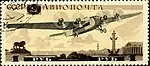 - Авиапочта. Серия авиапочтовых марок «Самолёты СССР»: самолёт АНТ-20 «Максим Горький», коричневая, синяя на кремовом фоне. Фототипия на плотной кремовой бумаге без водяного знака на полях марочного листа, перфорирована: линейная зубцовка 12½ (на каждые 2 сантиметра края марки приходится 12½ зубцов). В марочных листах по 75 (5×15) марок[1][19][18].