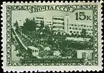 - Серия «Курорты СССР»: Сочи. Санаторий РККА имени тов. Ворошилова, зелёная. Фототипия на бумаге, без водяного знака, перфорирована: линейная зубцовка 12½ (на каждые 2 сантиметра края марки приходится 12½ зубцов). В марочных листах по 100 (10×10) экземпляров[1][18][20].