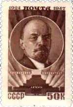 - Серия «23-я годовщина со дня смерти В. И. Ленина»: Мавзолей В. И. Ленина, серо-зелёная. Глубокая печать, перфорирована: линейная зубцовка 12½ (на каждые 2 сантиметра края марки приходится 12½ зубцов). В марочных листах 100 (10×10) марок[1][6][8].