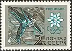 - X зимние Олимпийские игры в Гренобле (Франция). На марке (ЦФА [АО «Марка»] № 3529) — фигурное катание, многоцветная. Металлография в сочетании с глубокой тоновой печатью, перфорирована: рамочная зубцовка 11½ (на каждые 2 сантиметра края марки приходится 11½ зубцов). В марочных листах 50 (5×10) марок[2][6][7].