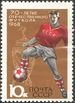 - Серия «Международные спортивные соревнования года»: футбол, многоцветная. Офсетная печать на мелованной бумаге, перфорирована: комбинированная гребенчатая зубцовка 12:12½ (на каждые 2 сантиметра края марки приходится 12:12½ зубцов). В марочных листах по 25 (5×5) марок[2][6][7].