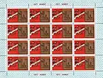- Почтово-благотоворительный выпуск «Туризм под знаком Олимпиады в СССР»: «Туризм по Золотому кольцу». На марке (ЦФА [АО «Марка»] № 4795) — Иваново. Монумент борцам революции, многоцветная. Глубокая печать в сочетании с металлографией, перфорирована: комбинированная рамочная зубцовка 11½:12 (на каждые 2 сантиметра края марки приходится 11½:12 зубцов). В марочных листах 25 (5×5) и малые листы (кляйнбогены) по 16 (4×4) марок[2][13][16][17].