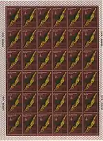 - Почтово-благотоворительный выпуск Игры XXII Олимпиады. Москва-80. На марке (ЦФА [АО «Марка»] № 4815) — гребля на каноэ, многоцветная. Офсетная печать, перфорирована: комбинированная гребенчатая зубцовка 12½:12 (на каждые 2 сантиметра края марки приходится 12½:12 зубцов). В марочных листах 36 (6×6) и малые листы (кляйнбогены) по 20 (4×5) марок[2][5][6][7].