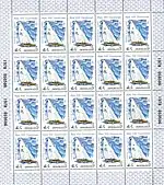 - Почтово-благотоворительный выпуск Игры XXII Олимпиады. Москва-80. На марке (ЦФА [АО «Марка»] № 4900) — швертбот-двойка (экипаж два человека) класса «470», многоцветная. Офсетная печать на мелованной бумаге, перфорирована: комбинированная гребенчатая зубцовка 12:12½ (на каждые 2 сантиметра края марки приходится 12:12½ зубцов). В марочных листах 36 (6×6) и малые листы (кляйнбогены) по 20 (5×4) марок[2][11][12][13].