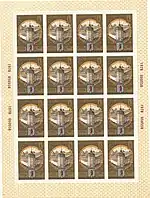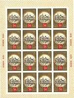 - Почтово-благотоворительный выпуск «Туризм под знаком Олимпиады в СССР»: «Туризм по Золотому кольцу». На марке (ЦФА [АО «Марка»] № 4905) — Загорск. Стены и башни Лавры, многоцветная. Глубокая печать в сочетании с металлографией, перфорирована: комбинированная рамочная зубцовка 12:11½ (на каждые 2 сантиметра края марки приходится 12:11½ зубцов). В марочных листах 25 (5×5) и малые листы (кляйнбогены) по 16 (4×4) марок[2][14][15][16].