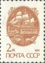 - Каталог почтовых марок России и СССР: почтовые марки СССР 1991 года. stamprus.ru. Дата обращения: 14 октября 2018. Архивировано 30 июня 2017 года.