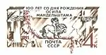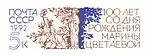- Последняя односторонняя почтовая карточка СССР с оригинальной маркой[80]. На почтовой марке и карточке указан год эмиссии: 1992. Воспроизведён автограф Цветаевой, на марке дата 1992 год и памятный текст: «100 лет со дня рождения Марины Цветаевой». Подписана в печать 11.07.1991 года[Комм 97]. Данных о номинале, тираже и художнике нет в АИ и указана дата 11 июля 1991 года[81].