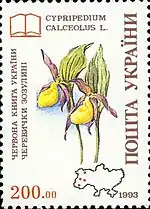 Червона книга України. Черевички зозулині. с укр. — «Красная книга Украины. Башмачок настоящий (Cypripedium calceolus L.)»[1][7][11]. |