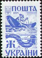 Этнографический сюжет «Древняя Украина»: Рыбак[25][38] в долблёной лодке ловит сома на Днепре[1]. | Ж[Комм 10] | 15 октября 1994 года |