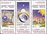 Зчіпка «150 років астрономічній обсерваторії Київського університету ім. Тараса Шевченка». с укр. — «Сцепка 150 лет астрономической обсерватории Киевского университета имени Тараса Шевченко из трёх марок»[1][9][11]. |
