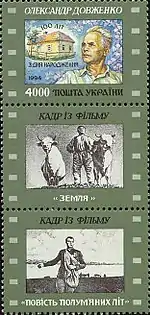 «100 років від дня народження Олександра Петровича Довженка (1894—1956)». с укр. — «100 лет со дня рождения Александра Петровича Довженко (1894—1956) с купонами»[1][14][15]. |