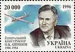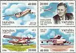 Зчіпка серії «Літакобудування в Україні», чотири марки: Генеральний конструктор О. К. Антонов (1906—1984) Ан-2 Ан-124 «Руслан» Ан-225 «Мрія». с укр. — «Сцепка «Самолётостроение Украины»: