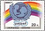 «50 років ЮНІСЕФ — Дитячого фонду ООН». с укр. — «50 лет ЮНИСЕФ — детскому фонду ООН»[1][43][44]. |