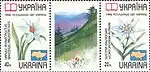 Зчіпка «Рослинний світ України. Червона книга України», дві марки з купоном: Нарцис вузьколистий (Narcissus anqustifolius) Білотка альпійська (Leontopodium alpinum). с укр. — «Сцепка «Растительный мир Украины. Красная книга Украины», марки: