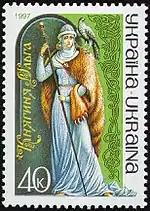 - Марка Славетні жінкі України. Велика княгіня київська Ольга. (укр.). КМД УДППЗ «Укрпошта». poshta.kiev.ua. Дата обращения: 19 ноября 2017. Архивировано 19 ноября 2017 года.