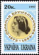 «125 років від дня народження Соломії Амвросіївни Крушельницької (1872—1952)». с укр. — «125 лет со дня рождения Саломеи Амвросиевны Крушельницкой (1872—1952)»[1][22]. |