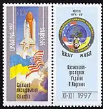 - Марка Спільний американсько-український космічний експеримент "Columbia" (19.11-5.12.1997). Космонавт дослідник України Л.К. Каденюк. (укр.). КМД УДППЗ «Укрпошта». poshta.kiev.ua. Дата обращения: 22 ноября 2017. Архивировано 22 ноября 2017 года.