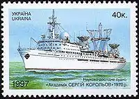 - Марка Суднобудування в Україні. Науково-дослідне судно "Академік Сергій Корольов". (укр.). КМД УДППЗ «Укрпошта». poshta.kiev.ua. Дата обращения: 22 ноября 2017. Архивировано 22 ноября 2017 года.