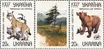 Зчіпка «Тваринний світ України», дві марки з купоном: Рись звичайна; Ведмідь бурий. с укр. — «Сцепка „Животный мир Украины“, две марки с купоном: