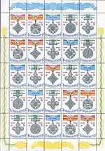 Зчіпка «Нагороди України» з п'яти марок Відзнака Президента України: «орден «За заслуги»; «Орден Богдана Хмельницького»; «За мужність»; медаль «За військову службу Україні»; медаль «За бездоганну службу». с укр. — «Сцепка „Награды Украины“ из пяти марок: |