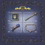 Блок «Офіційні символи глави держави»: Прапор (штандарт) Президента України; Булава Президента України; Гербова печатка Президента України; Знак Президента України. |