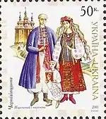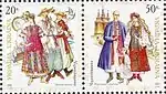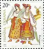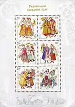 Блок «Український народний одяг». с укр. — «Блок «Украинский народный костюм»»[20][23]. |