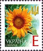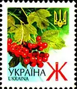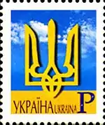 Пятый выпуск стандартных марок независимой Украины (2001—2006)[24] был представлен знаками почтовой оплаты литерными номиналами: «В», «Д», «Е», «Є», «Ж», «Р»[9][25]. Они соответствуют заранее указанному Укрпочтой тарифу на пересылку корреспонденции, а также эквивалентны определённой сумме в гривнях или долларах США, стоимость для продажи последних рассчитывается по курсу НБУ[26].