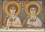 Блок «Києво-Печерська лавра. 1051—2001»: Успенський собор. с укр. — «Блок «Киево-Печерская лавра (1051—2001)»: Успенский собор»[13][15]. |