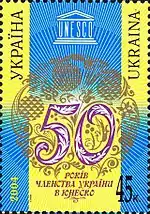 «50 років членства України в ЮНЕСКО». с укр. — «50-летие членства Украины в ЮНЕСКО»[13][16]. |