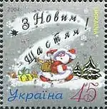- Зчіпка З Новим роком! З Новим щастям! 2004. (укр.) (недоступная ссылка). КМД УДППЗ "Укрпошта". poshta.kiev.ua. Дата обращения: 10 апреля 2018. Архивировано 10 апреля 2018 года.