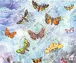 Блок «Метелики»: Бражник мертва голова; Стрічкарка дубова; Совка розкішна; Бражник дубовий; Павиноочка грушева. с укр. — «Блок «Бабочки»: |