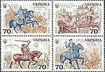 - Размер 139х72 мм, в блоке 4 (2х2), т.е. по 2 марки № 664 (номиналом 2,61 гривны — использован рисунок марки № 658, но меньшего размера) и по 2 марки № 665 (номиналом 3,52 гривны — использован рисунок марки № 659, но меньшего размера), напечатаны двумя сцепками в последовательности: № 664, 665. Блок вклеен в буклет №6, при этом номера почтовых марок блока в тексте буклета указаны неправильно[38].