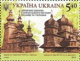 - Марка «Дерев’яні церкви Карпатського регіону Польщі та України» (Спільний випуск). (укр.) (недоступная ссылка). КМД УДППЗ «Укрпошта». poshta.kiev.ua. Дата обращения: 9 марта 2018. Архивировано 9 марта 2018 года.