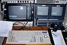 Моноскопы использовались в качестве генераторов символов для рендеринга видео в текстовом режиме на компьютерных дисплеях в течение короткого времени в 1960-х годах[1]. CBS Laboratories Vidiac и система AB Dick 990 были одними из первых генераторов символов для вещательного телевидения[2][3]. CBS Laboratories позже разработала более продвинутую систему Vidifont в рамках подготовки к президентским выборам в США 1968 года, когда требовался быстрый метод полностью электронной генерации символов, чтобы новостные агентства могли идентифицировать неожиданных интервьюируемых на месте. Аналогичный генератор, использующий аналоговую электронику, Anchor, был разработан BBC в 1970 году и использовался на всеобщих выборах позже в том же году[4][5].