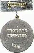 На оборотной стороне знака надпись «Томская область» и порядковый номер.