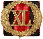 Знак отличия представлял из себя прорезную пряжку в виде дубового венка, в центре которого помещены римские цифры, обозначавшие срок выслуги (XV, XX, XXV и т.д.). Пряжка накладывалась на отрезок орденской ленты, полагавшейся по роду службы конкретному награждённому.