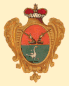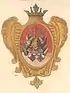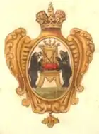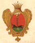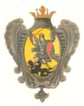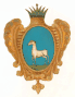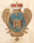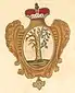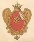 На лазуревом поле внизу литера W, поперёк полоса золотая, под нею три короны, а сверху два ангела с крыльями, в одеянии красном, крылья у одного лазуревые, а у другого жёлтые. |