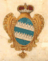 Белый баран, лежащий в огне на дровах, что учинил Санти, поле лазуревое. |
