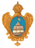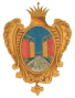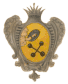 В красном поле золотая мортира, а по обеим сторонам положено по куче чёрных бомб. |