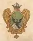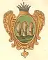 В руке из облака лук с одною стрелою белою, а перо чёрное, в стороне крест красный, поле жёлтое. |